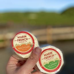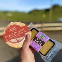 Marin French Cheese Company is an outstanding cheese maker and has a fabulous shop between Petaluma and Novato. I've been coming here since I moved to CA in 1994. It used to be Rouge et Noir, but I like their new image and name. All of their cheeses are great! If you come to the shop, there are samples of every variety and always some specials that make it worth the drive. (The drive would be worth it anyway because it's beautiful; rolling hills with gorgeous rock outcroppings and gnarly oak trees. ) There is a lovely pond and picnic area where you can eat cheeses or food that you purchased or BYO picnic. We got a fantastic deal of 8 wheels of cheese for $40! Now, we head home to eat our cheese haul. Bon Appetit!